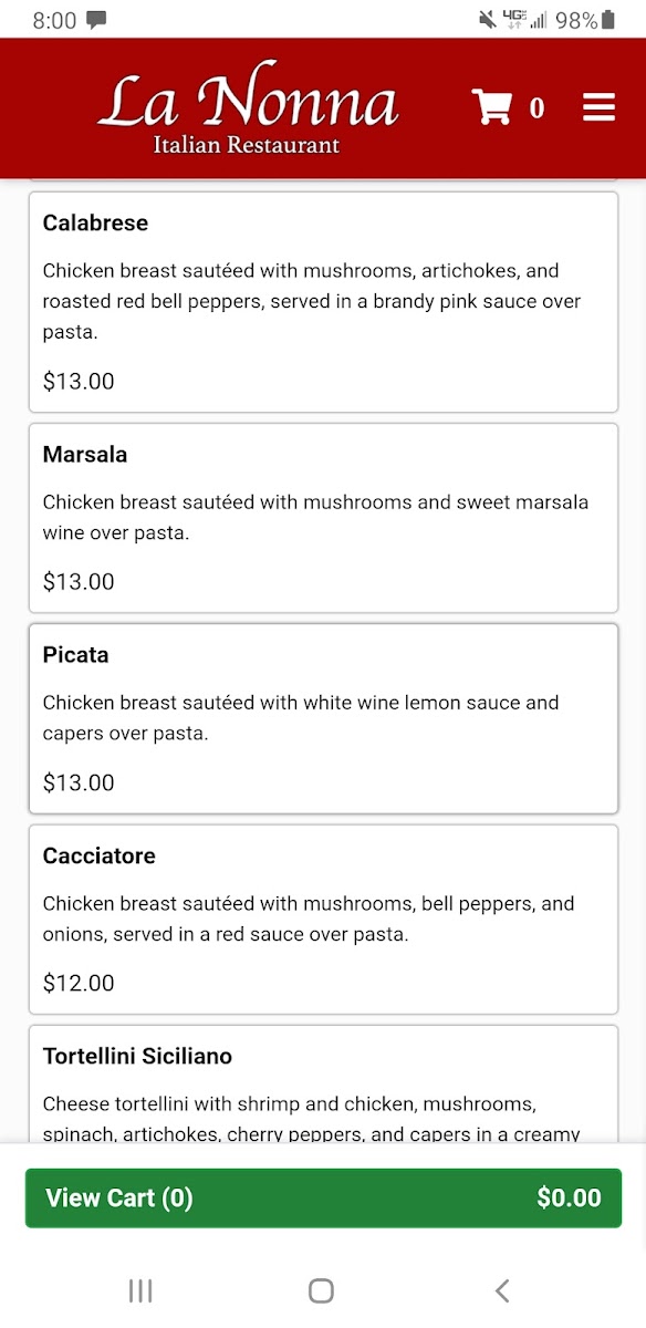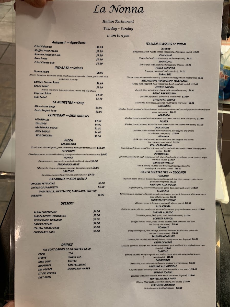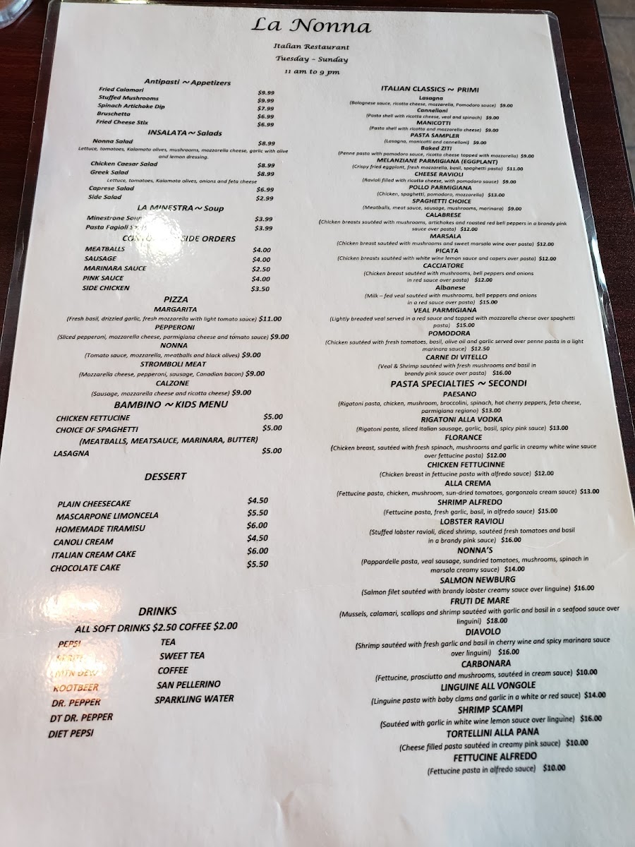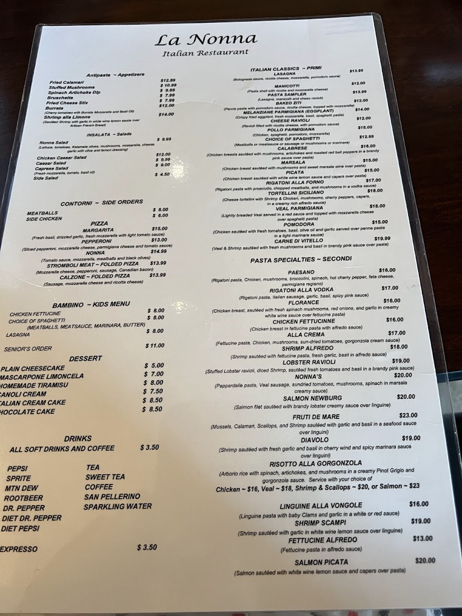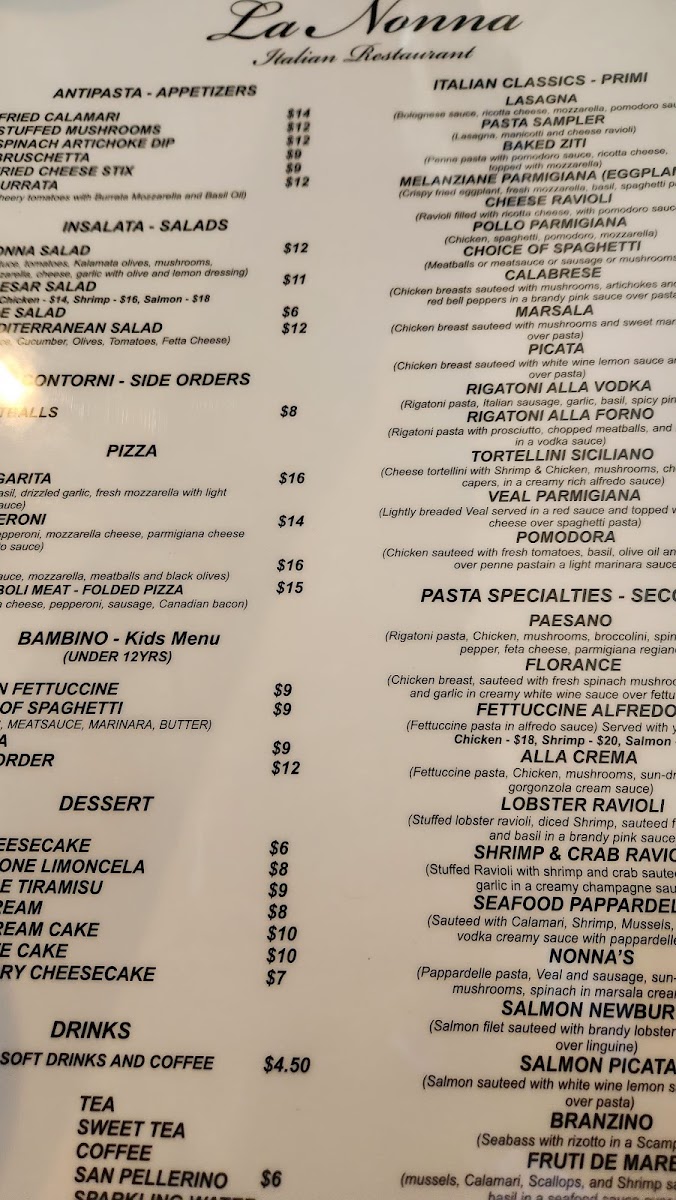 La Nonna Italian Restaurant offers a thoughtfully curated menu that reflects the warmth and tradition of classic Italian cooking. The menu features a balance of comforting pasta dishes, fresh salads, and satisfying appetizers designed to complement the inviting and relaxed atmosphere of the dining room.